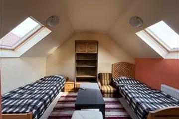 Rétság központjától pár perces sétatávolságra kiadó egy 6+2 fő részére alkalmas munkásszálló.Az ingatlanban három darab két ágyas különálló szoba került kialakításra, viszont összesen 8 fő részére biztosított férőhely. a földszinti szoba külön zuhanyzóval és mellékhelyiséggel rendelkezik, a tetőtéri szobák egyike csak zuhanyzóval, de mind a két szinten kialakításra került vizesblokk, ezeknek elhelyzkedését a képek között található alaprajz mutatja. a földszinten helyett kapott még egy tágas ebédlő és egy gépesítéssel ellátott konyha is. Fűtését és melegvíz-ellátását gázkazán biztosítja, a hőleadók radiátorok.