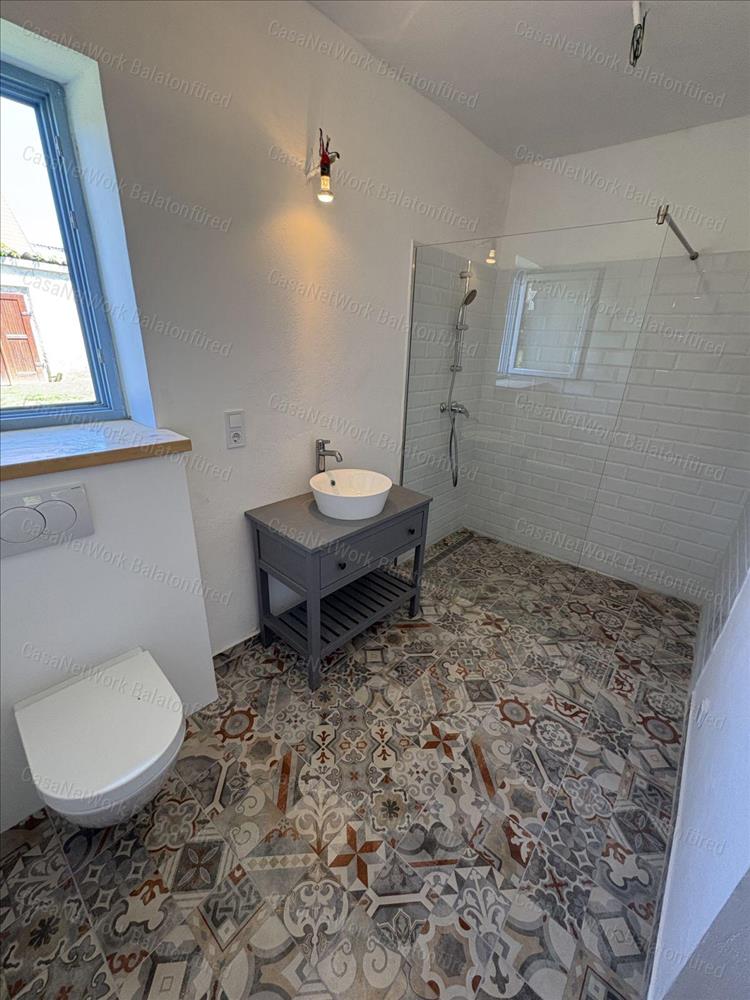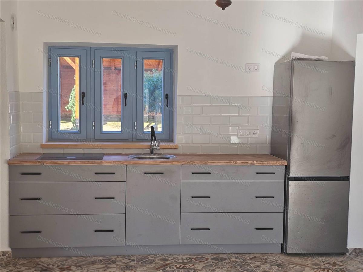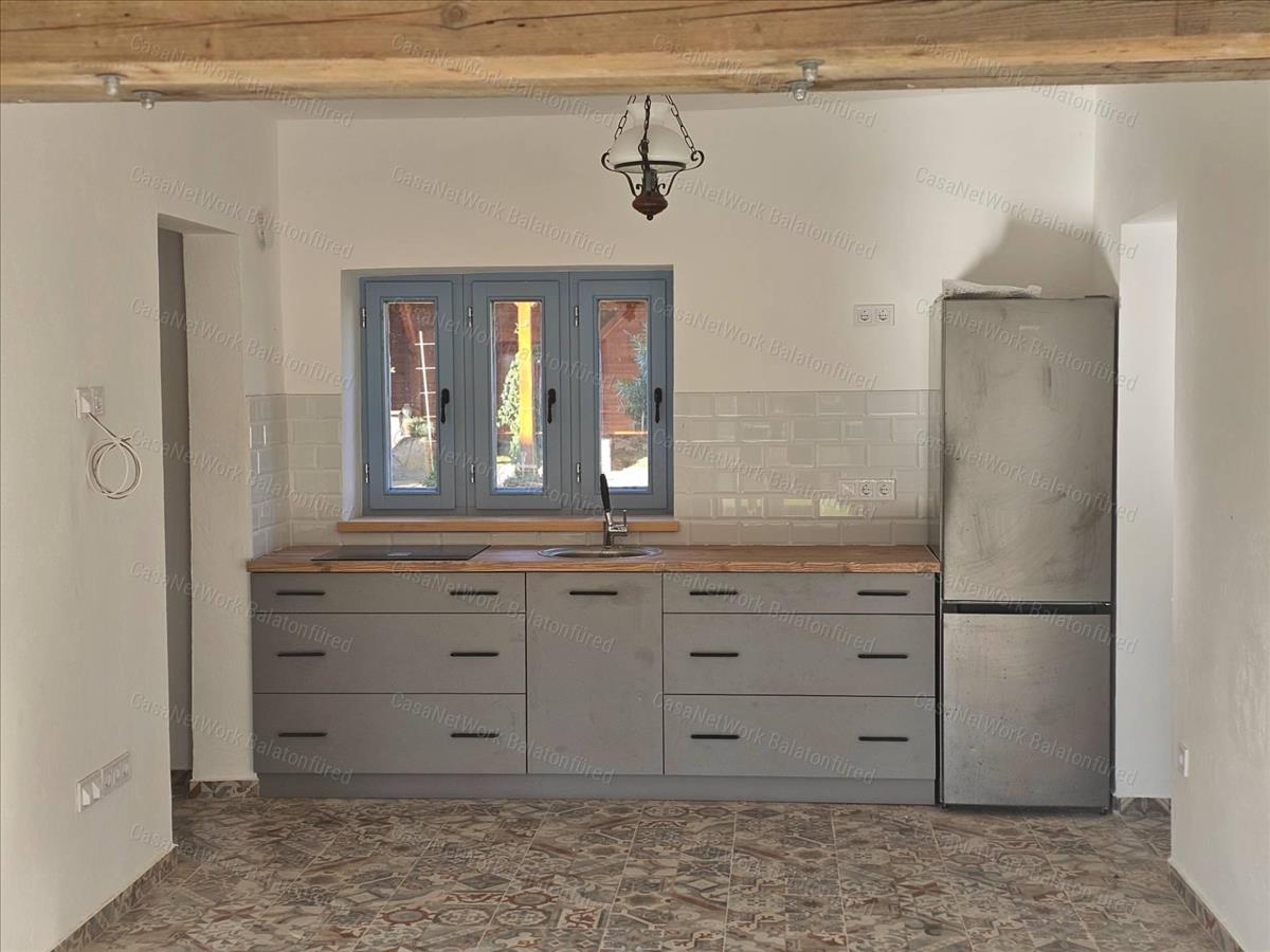 45 M²-es vendégház: a szintén frissen felújított, kétszintes vendégház ideális bisztró vagy más vállalkozás üzemeltetésére. Az elmúlt két évben sikeresen működött bisztróként, falusi pub-ként.