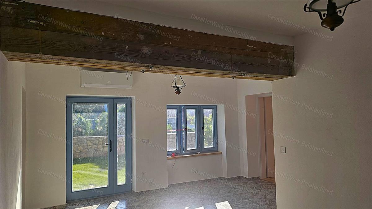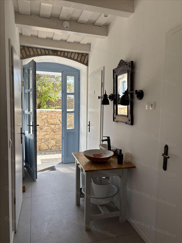 101 m²-es főépület: Ez a frissen felújított, egyszintes lakóház két hálószobával, étkezővel, konyhával és mellékhelyiségekkel rendelkezik. Az épülethez egy hangulatos boltíves pince is tartozik.