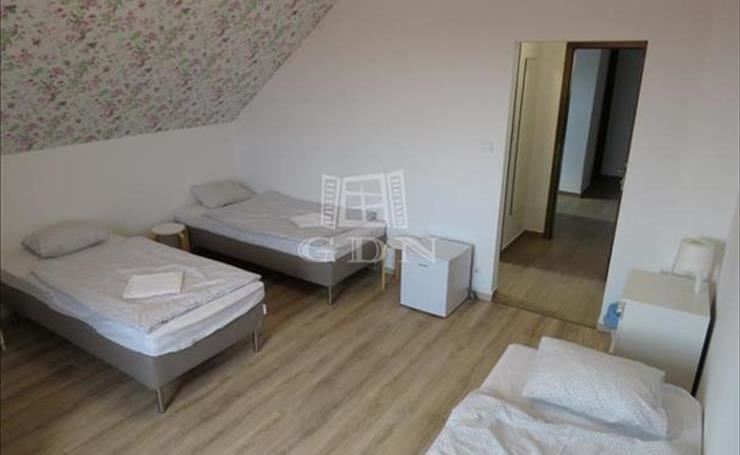 A kétszintes épület emeleten négy (2db 4 ágyas és 2db 3 ágyas), önálló fürdőszobás apartman, illetve egy teakonyha került kialakításra.