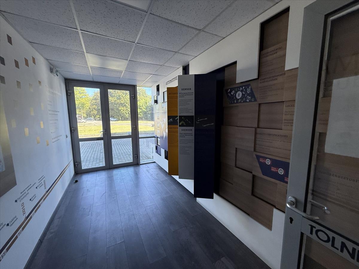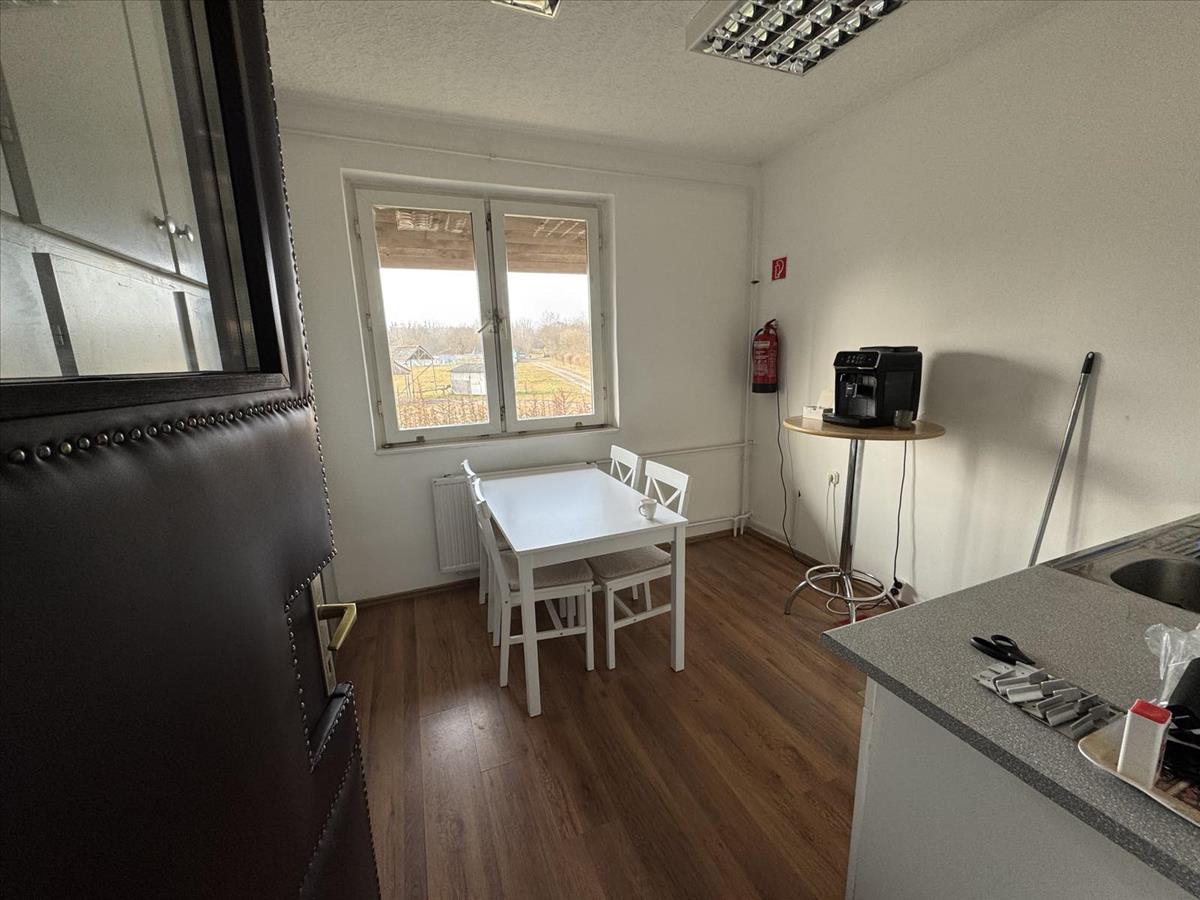 Az irodaház földszintjén öltöző, étkező, szociális helyiségek, raktárak, emeleten irodák - tárgyalók kaptak helyet, konyhával, mosdókkal.