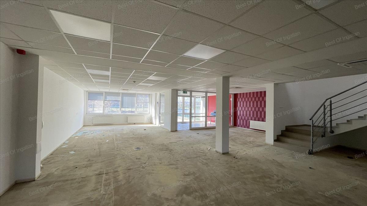 - Kétszintes irodaépület, földszinten 222 m2, emeleti szinten 212 m2 (iroda, bemutató terem, stb. )