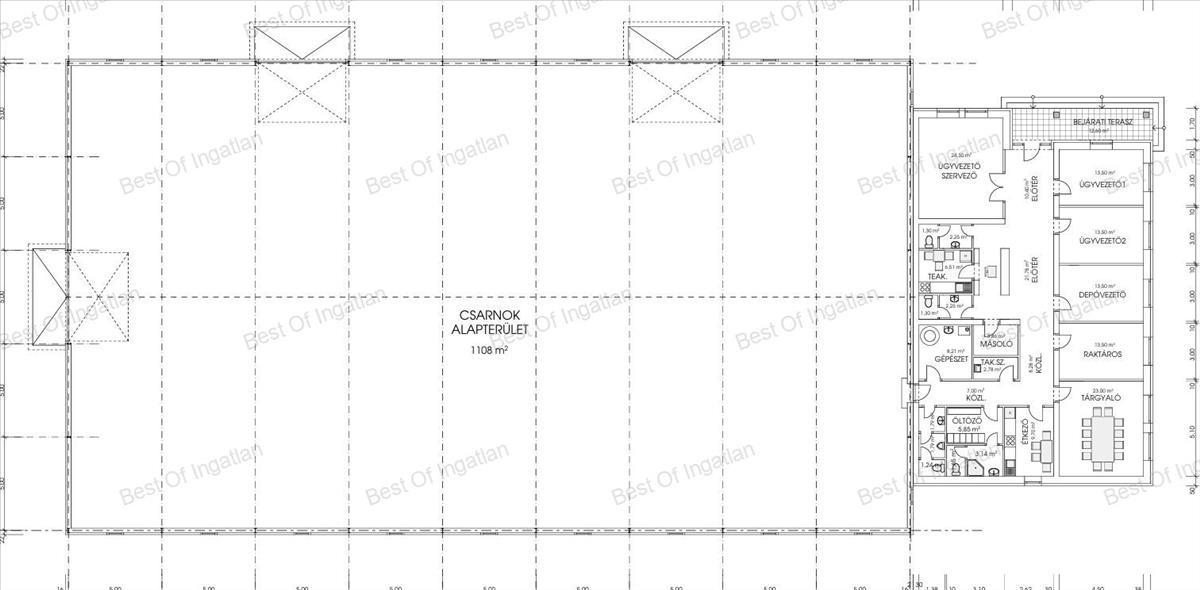 - csarnok: 1108 m2
