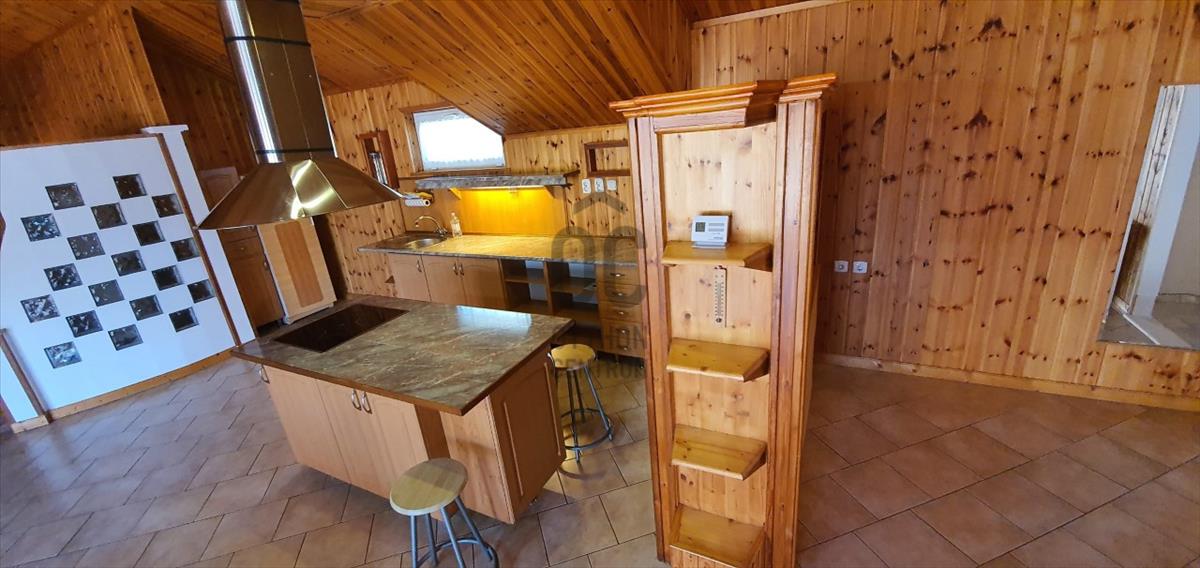 Konyha gépesített (villany tűzhely, sütő, hűtő, mosógép, mikrohullámú).