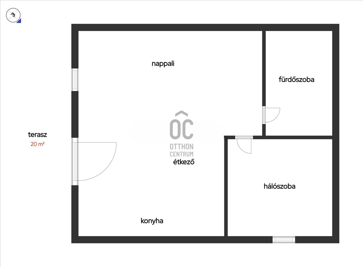 40 m2-es, átgondolt alaprajzú otthon, amerikai konyhás nappalival és egy külön nyíló szobával.