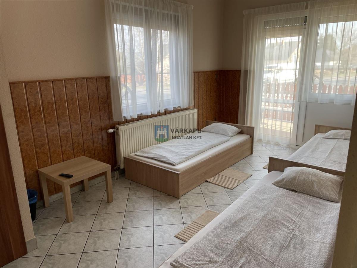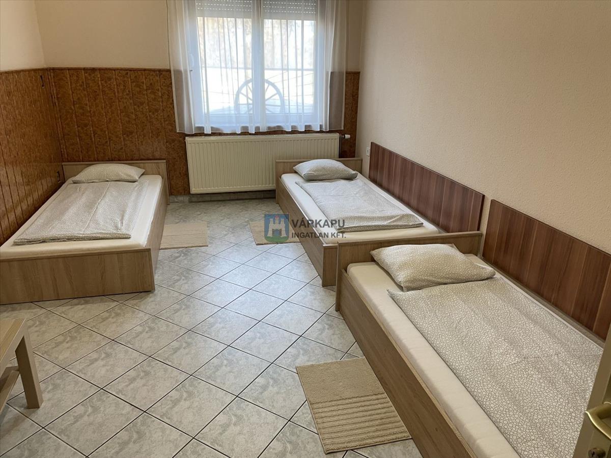 A 10 szobás épület földszintjén 4 szoba, 3 fürdőszoba, 3 wc, konyha, társalgó. a földszinten 4db 3 ágyas szoba. Az emeleten 6 szoba, 3 fürdőszoba 3 wc. Az emeleten 2 db 1 ágyas, 1 db 2 ágyas, 2 db 3 ágyas, 1 db 4 ágyas szoba. Szintenként is kiadó. Max létszám 26 fő.