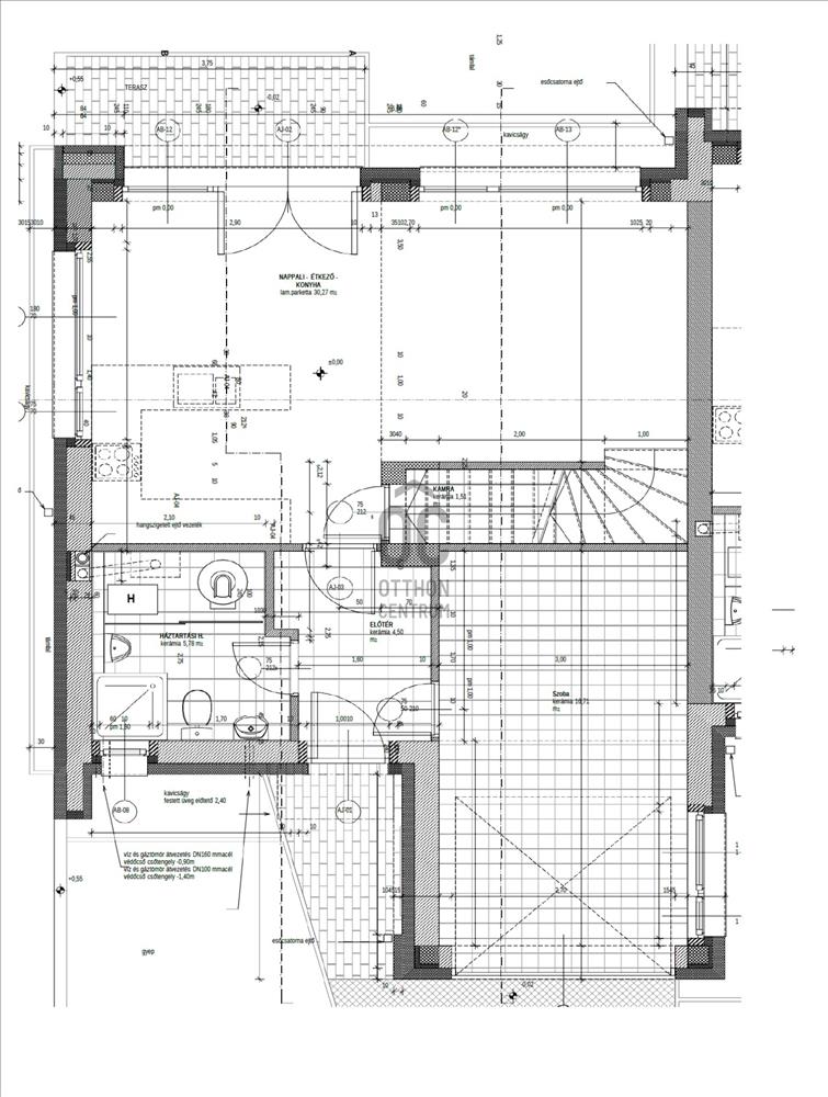 Fűtést kondenzációs gázkazán biztosítja, padló, -fal, -mennyezeti hőleadással.