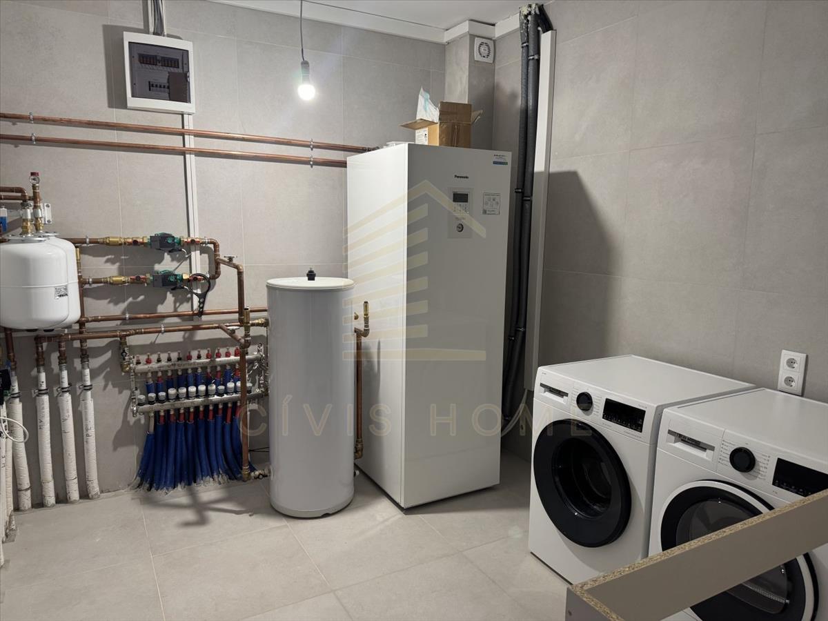 - Emelet: 3 hálószoba, gardrób, kádas-zuhanyzós fürdőszoba WC-vel, gépészeti helyiség és mosókonyha.