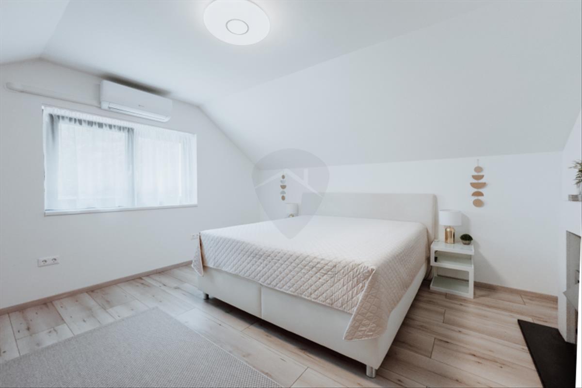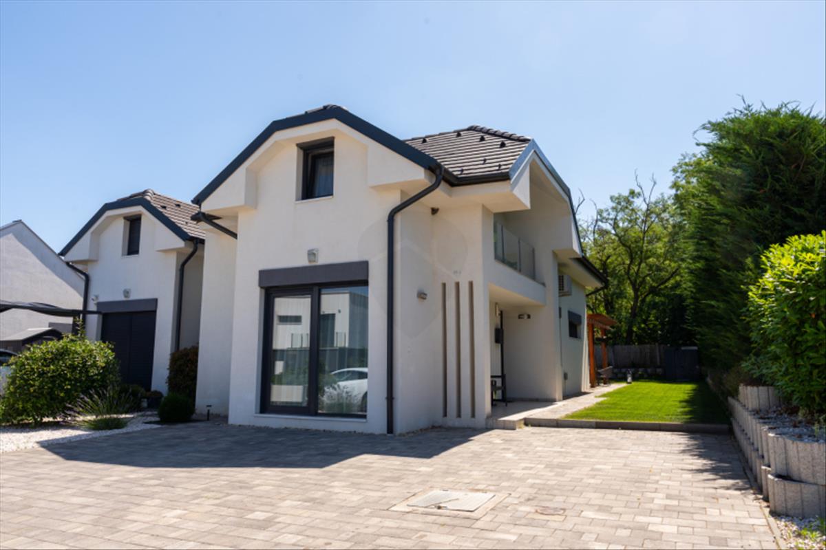 A kínált ingatlan egy 2020-ban épült ikerházfél, de külön helyrajzi számon, jogi és funkcionális értelemben is önálló családi ház.