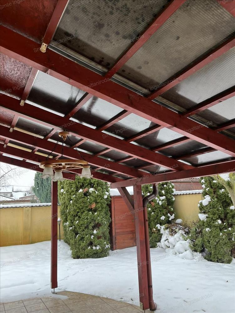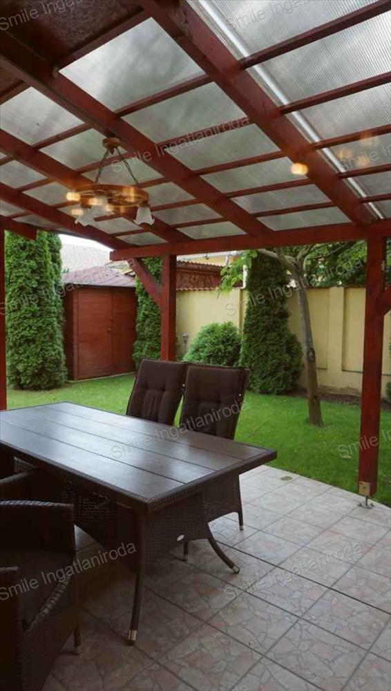A konyha gépesített, a kert parkosított és saját fúrt kúttal rendelkezik, a nappali kertkapcsolatát egy cca. 18-22 m2 –es NY-i tájolású fedett terasz biztosítja, a lakáshoz egy kb. 16 m2-es garázs is tartozik.