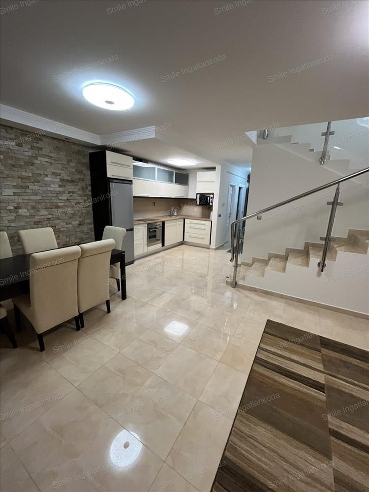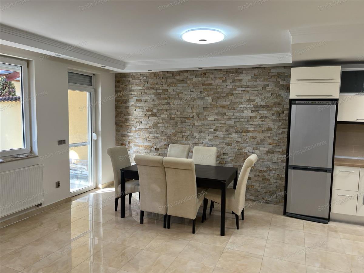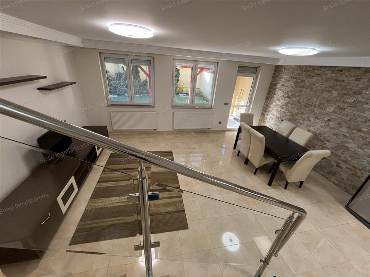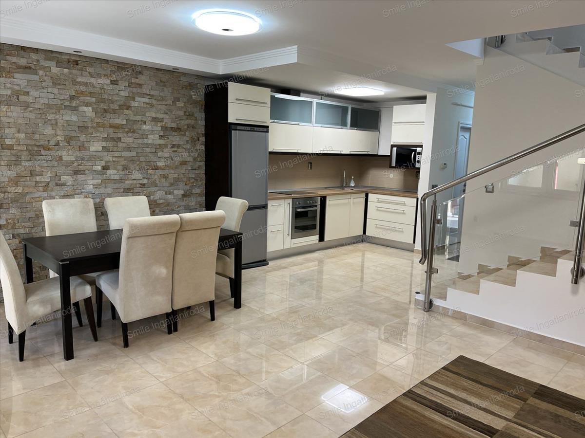 Nyíregyháza, Örökösföld kertvárosi övezetének egyik csendes utcájában szinte minden igényt kielégítő, dupla komfortos, klimatizált kétszintes, önálló kertrésszel rendelkező, amerikai-konyhás nappalis + 2 ½ szobás igényesen berendezett, iker típusú családi ház egyik lakása környezetére és önmagára igényes bérlő részére hosszabb távra kiadó.A lakás beosztása és elrendezése - az adottságok figyelembevételével és a lakástulajdonos átgondolt tervezésének köszönhetően - modern hatást, nyugodt és letisztult érzést tükröz. a szobák világosak a napfény derűs fényt sugároz a szobák falára és melegséggel árasztja el a tereket. A túlzott felmelegedéstől és a lehűléstől a szigetelt korszerű műanyag - redőnnyel felszerelt - nyílászárók védenek. Az alsó szinten padlófűtés míg a felső szinten radiátorfűtés biztosítja a meleget, a hűtésről pedig a klímák gondoskodnak.