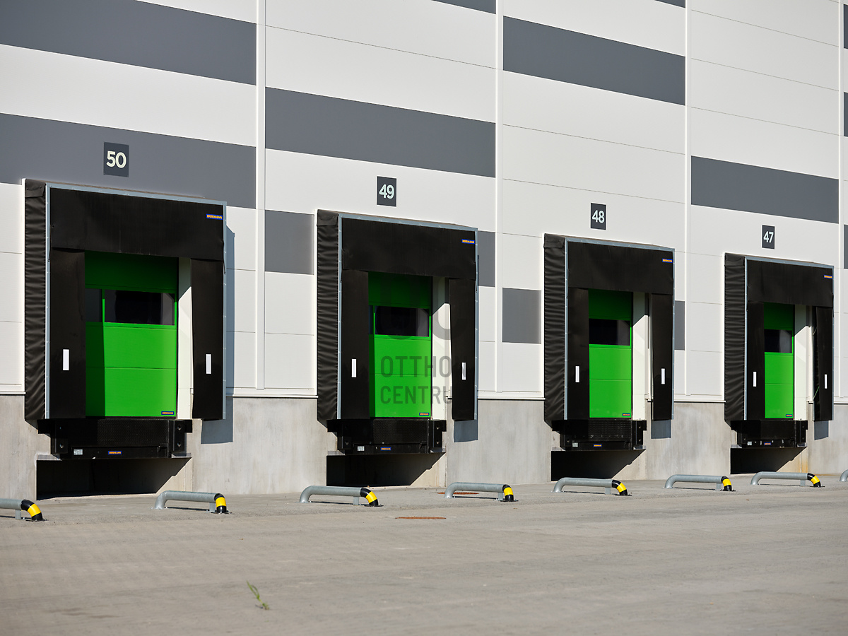 -Gördülékeny rakodás: szintbeni és dokkolókapuk, hidraulikus rámpakiegyenlítő;