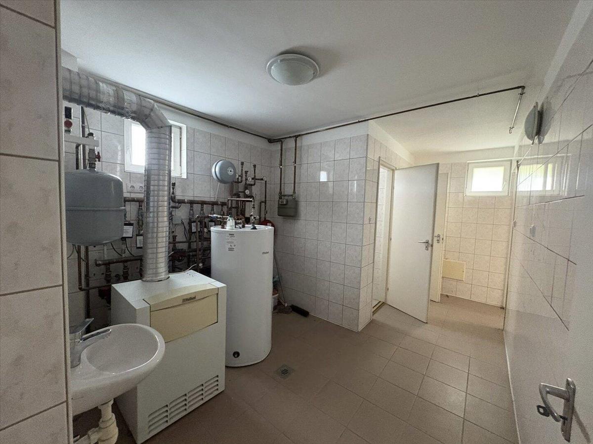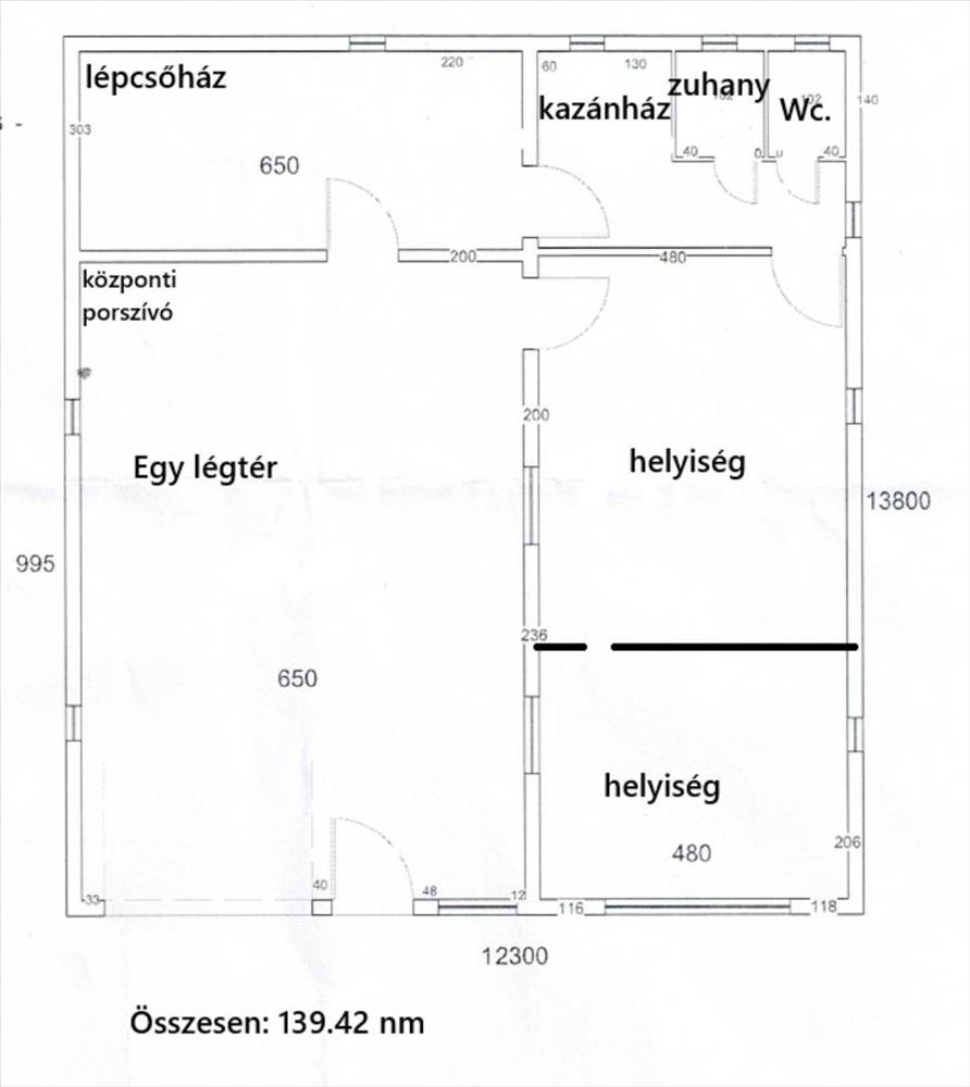 Földszint: 3 helyiség, zuhanyzó, wc, kazánház, közlekedő, lépcsőház – ideális üzletnek, irodának, bemutatóteremnek vagy raktárnak.