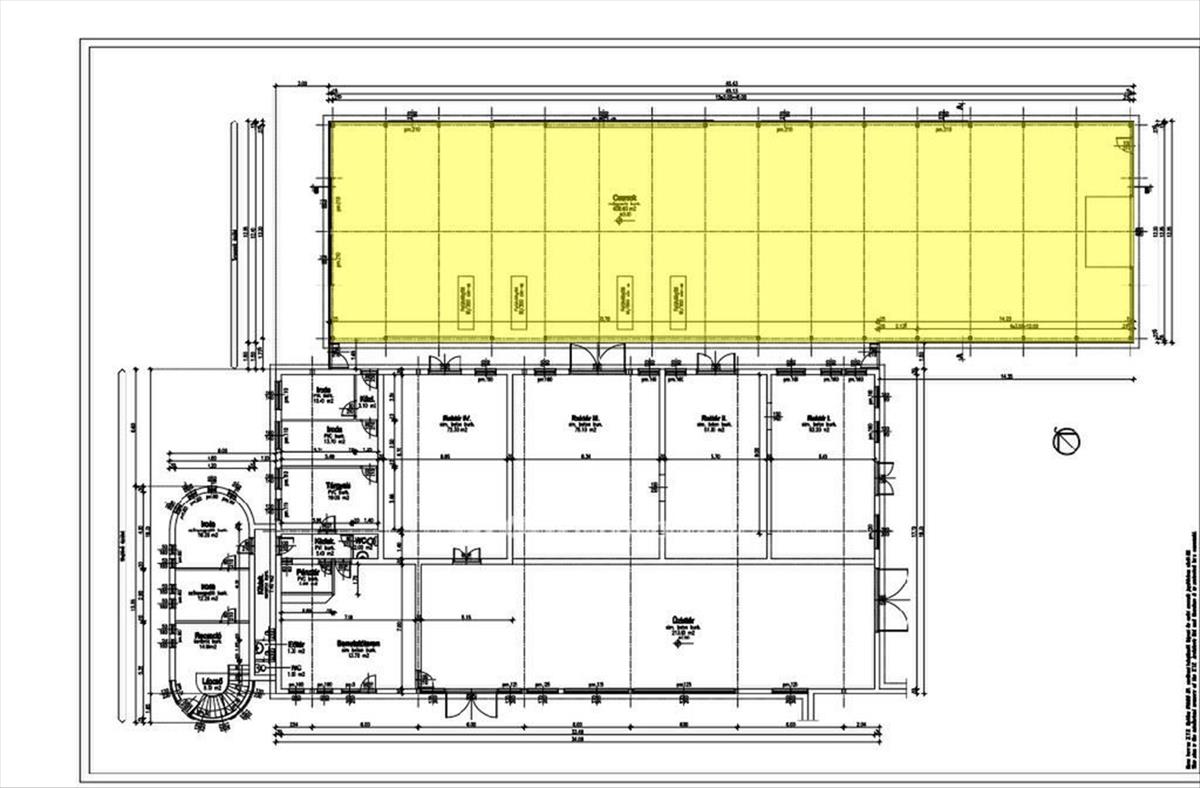 Ez egy 553 nm -es csarnok, ami 2 db 400x460 cm-es ipari kapun keresztül megközelíthető, targoncázható, fűtetlen.