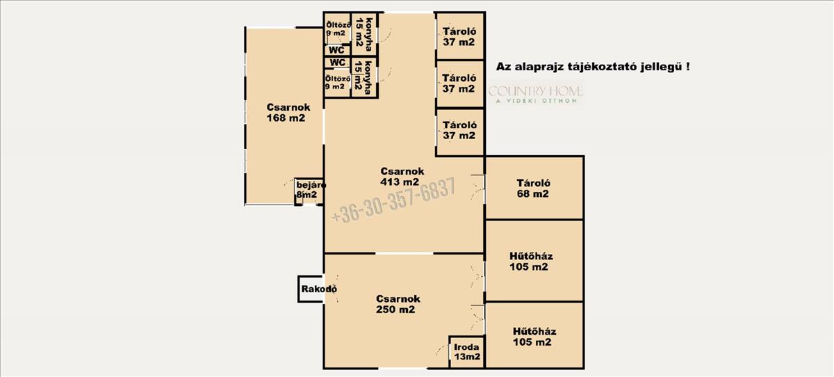• 413 m² – benne 22 m²-es iroda
