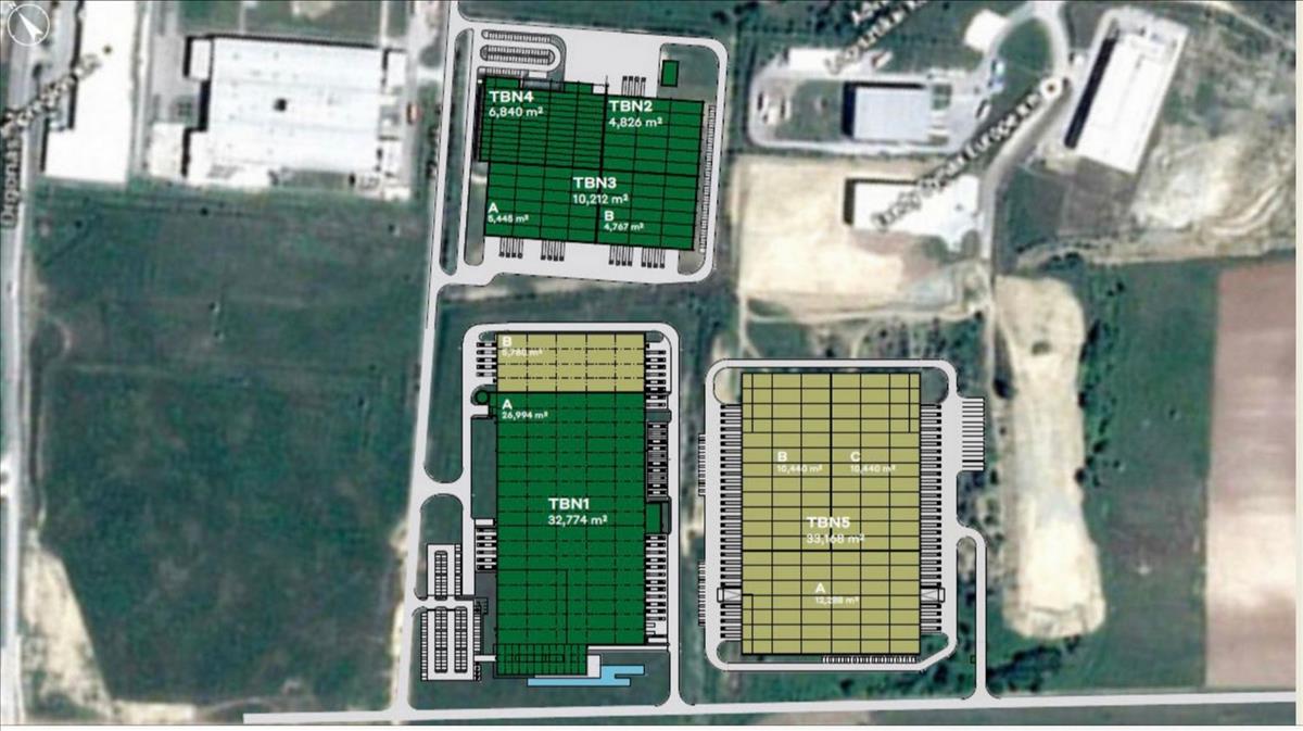 Tatabánya Ipari Parkjában 33200 m2-es, 10 m nettó belmagasságú gyártásra és logisztikára alkalmas ipari csarnok, iroda/szociális részekkel kiadó.