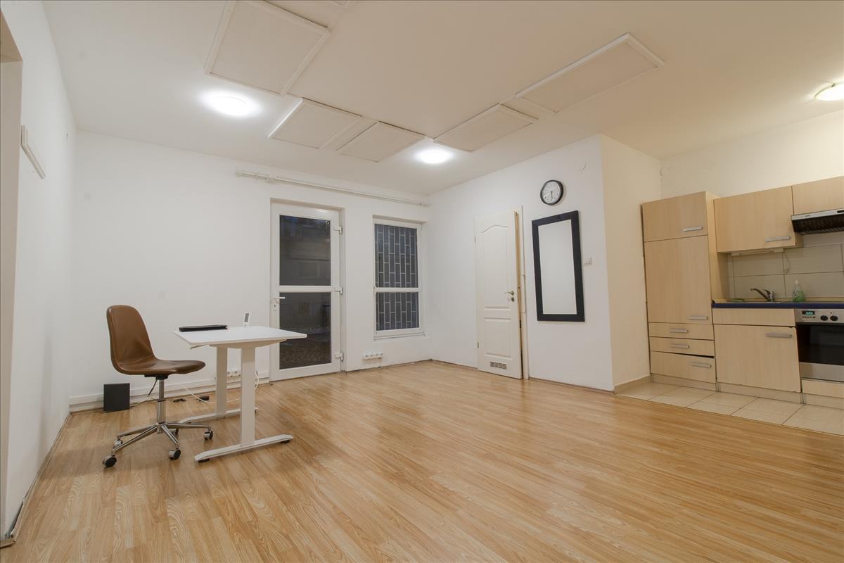 32 m2-es, 1 szobás, DNY-i fekvésű, földszinti, jó állapotú, műanyag nyílászárós, elektromos fűtéssel ellátott, konyhabútorral felszerelt (beépített hűtőszekrény, sütő, főzőlap), utcára néző, azonnal költözhető iroda, alacsony rezsivel minimum egy évre, két havi kaucióval kiadó.
