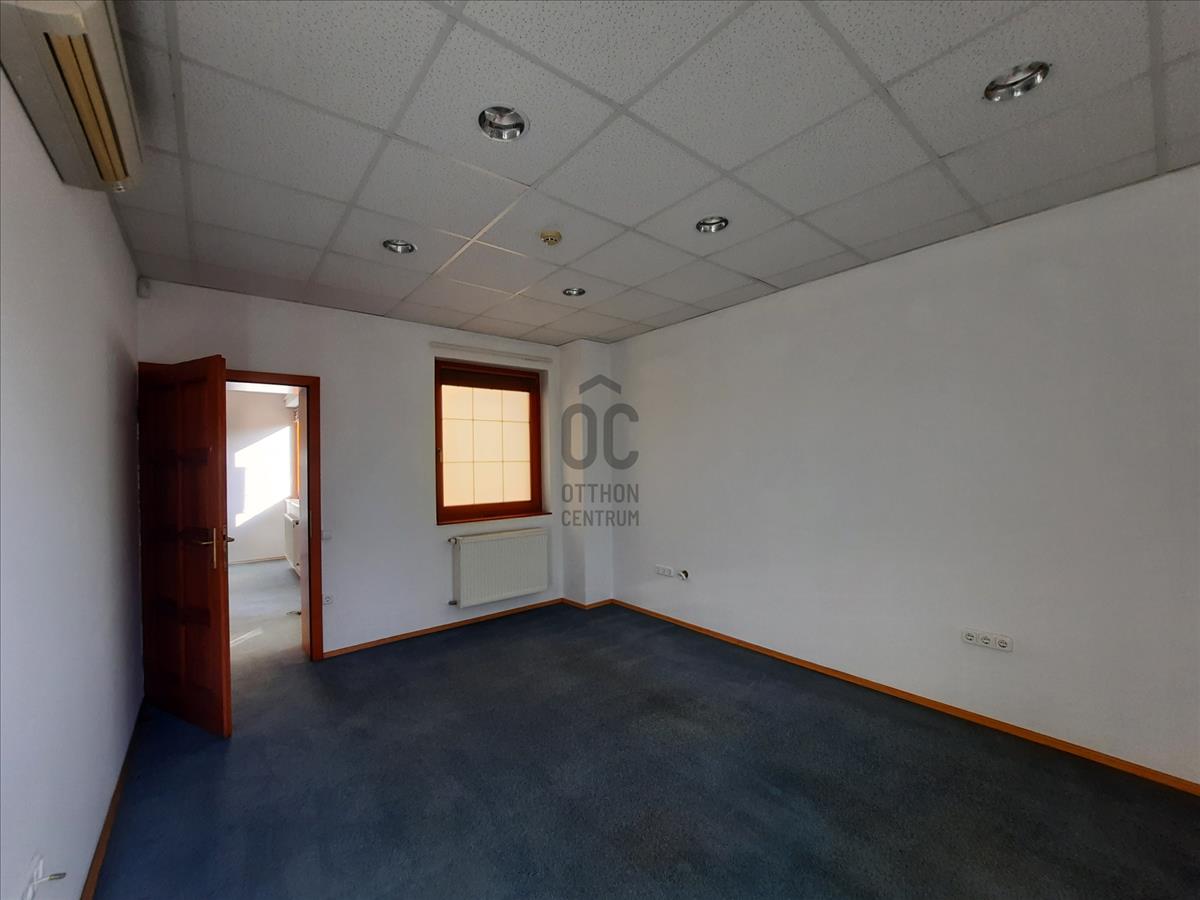 Bútorozatlan, a konyhában konyhabútor, kerámia főzőlap, mosogatógép, hűtő, minden helyiségben légkondicionáló berendezés, továbbá videó kaputelefon van. a számítógépes valamint telefonos hálózat kiépítésre került. Az ingatlan 5 irodahelyiségből, recepcióból, étkezős konyhából valamint női-férfi WC-ből és 1 zuhanyzóból áll. Az irodához tartozik egy 60 nm-es terasz. Az épület alatt teremgarázs található.
