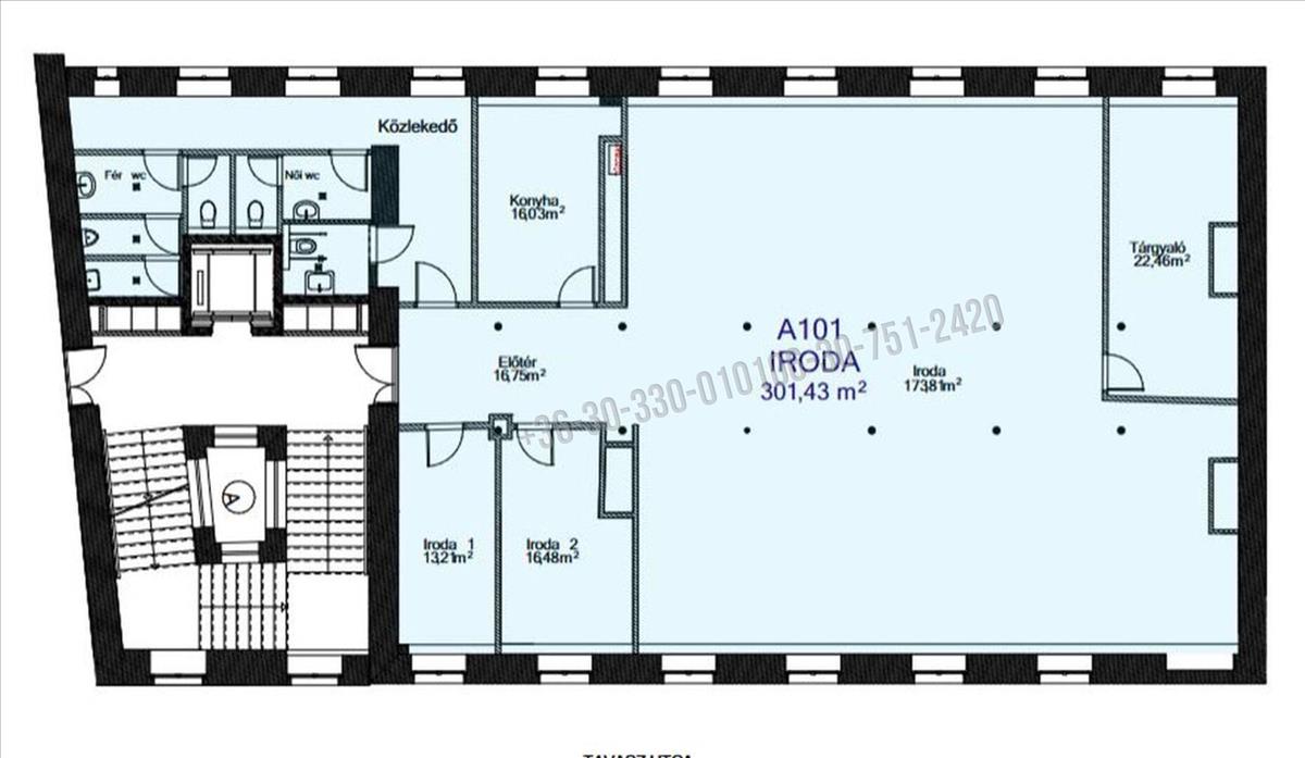 -I. emelet 300 nm nagy belmagasságú impozáns iroda: előtér