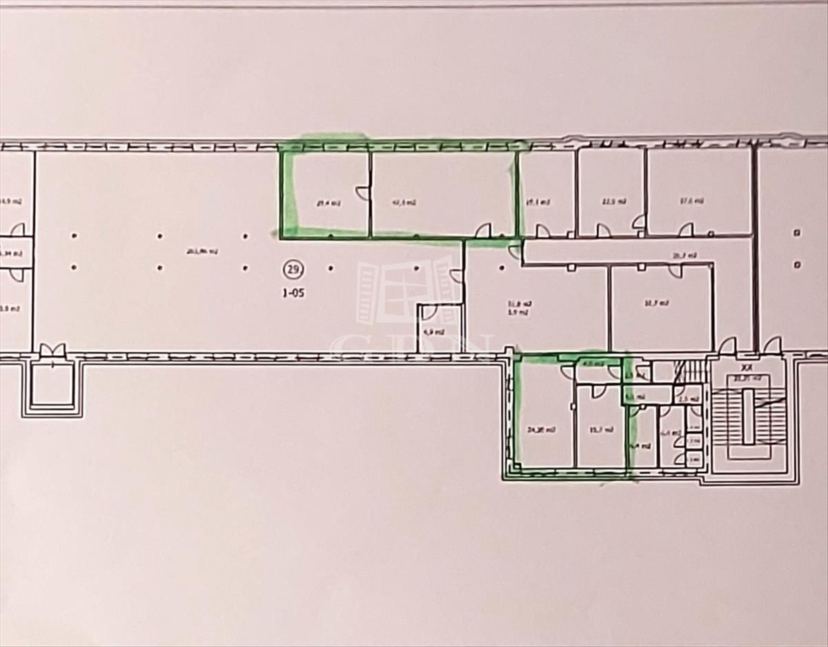 A modern, jó állapotú, klímával ellátott bérlemény, az irodaépület második emeletén helyezkedik el, melyet egy zárt folyosóról, és egy 8 nm -es közös területen áthaladva közelíthetünk meg. Két helyiségből áll, egy cc: 50 nm -es irodából és egy 30 nm -es tárgyalóból.
