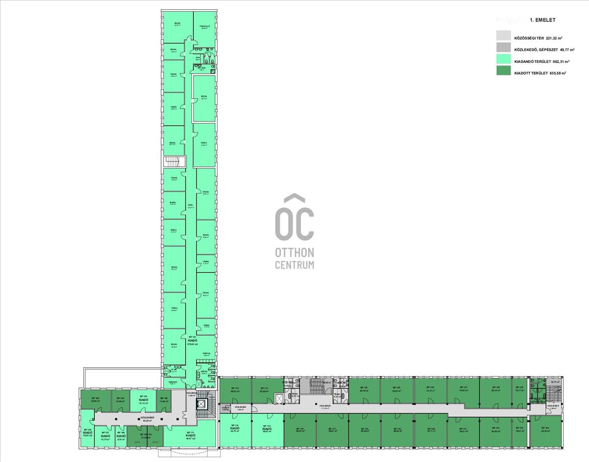 Az irodaházban a hagyományos blokkos kialakítás van jellemzően 15-40 nm-es szobákkal.