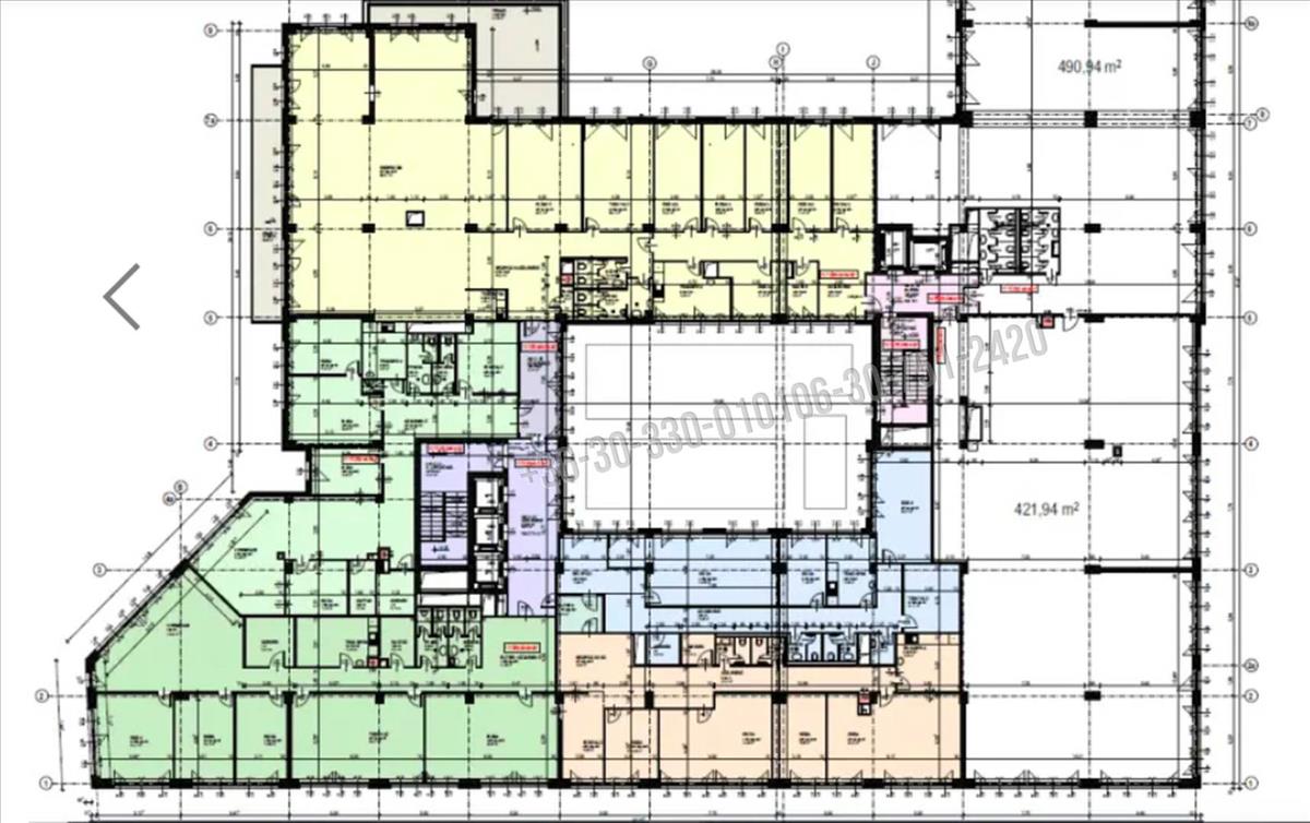 5. emelet: 292nm, 300nm, 441nm, 516nm, 250nm, 320nm, +28 nm terasz. Összesen: 2296nm 15EUR/m2/hó + áfa