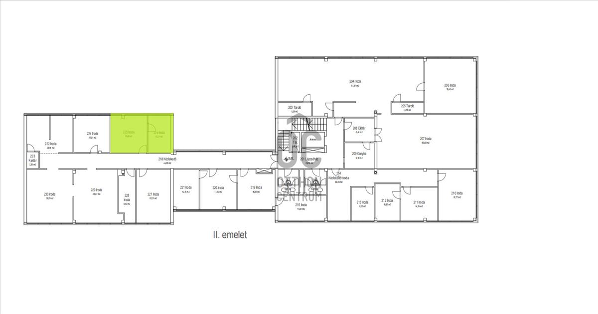 - 2 helyiségből álló iroda, zárható tárgyalóval
