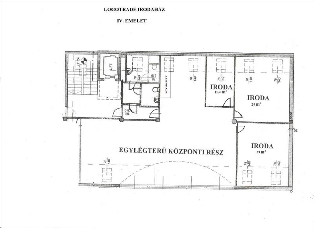 A bérelhető iroda a egy negyedik emeleten található, 230 m2-es területet.