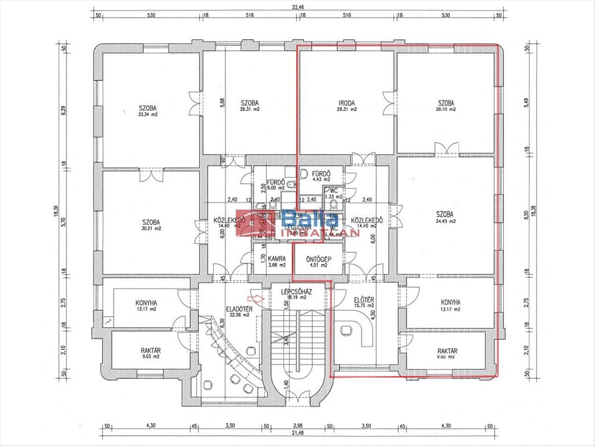 Tágas terek, nagy ablakok, elegáns környezet! a konyha gépesített, az ingatlan egyébként bútorozatlan. a klímás iroda riasztóval, kapunyitó rendszerrel felszerelt, fűtése házközponti.