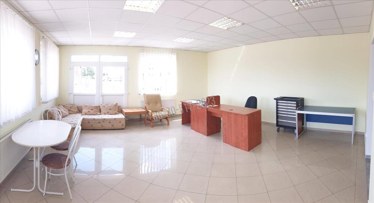 A belső elosztás jelenleg egy 36 m2-es ügyféltér, egy 15, 3 m2-es iroda, 45 m2-es iroda/raktár, 13, 6 m2-es konyha-étkező, női és férfi wc, fürdőszoba/mosdó és egy 23 m2-es terasz.