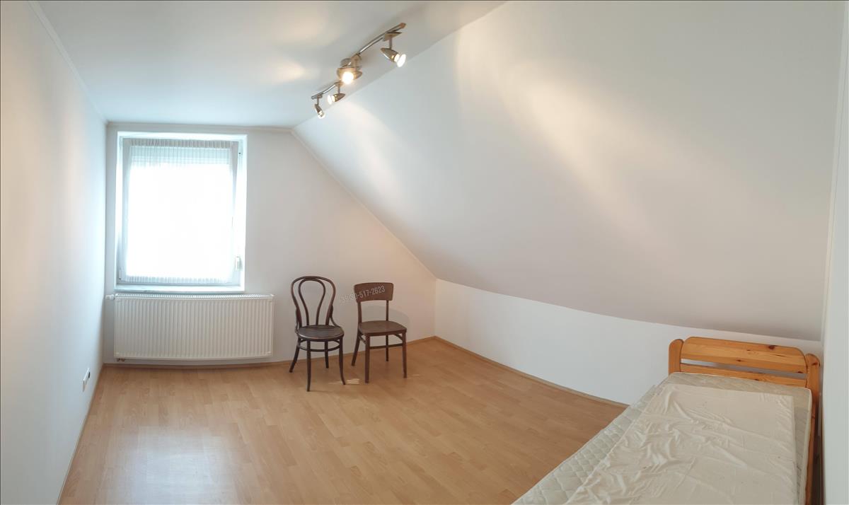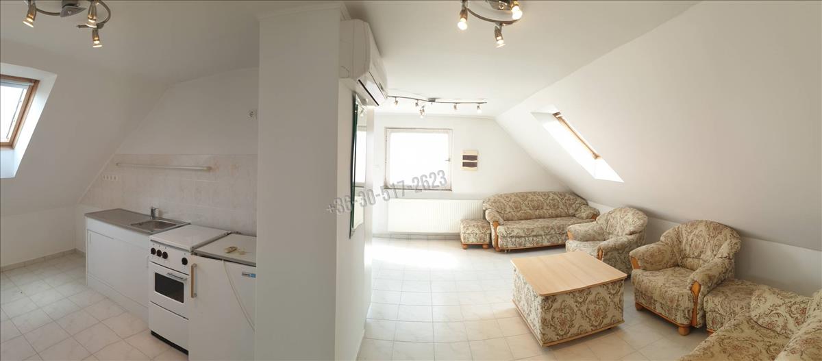 Az iroda felett a tetőtérben egy külső lépcsőn megközelíthető külön lakrészként funkcionálló kis lakás található, mely ideális lehet kollégák elszállásolására, vagy irodaként is hasznosítható. Itt két hálószoba, nappali-konyha és fürdőszoba található.