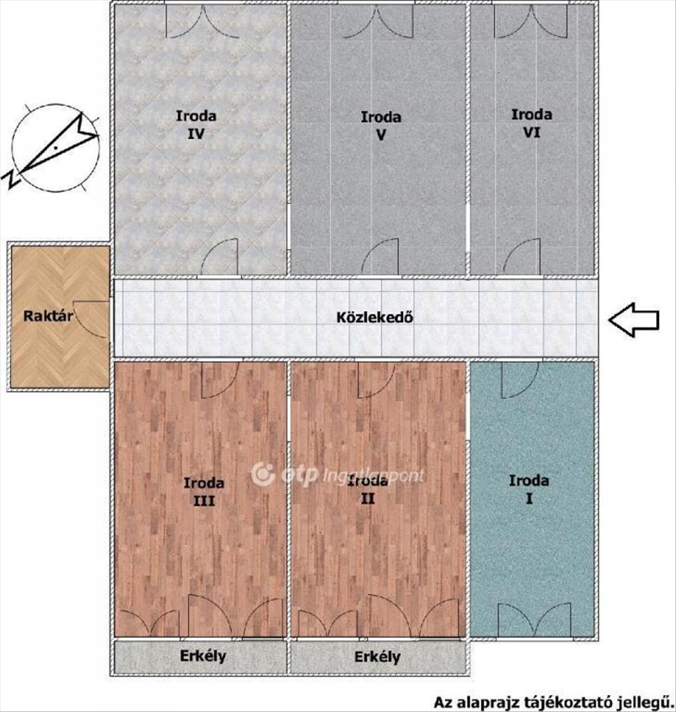 Emellett ugyanazon a folyosón egy közös, 3 m2-es raktár is rendelkezésre áll az irodákhoz.