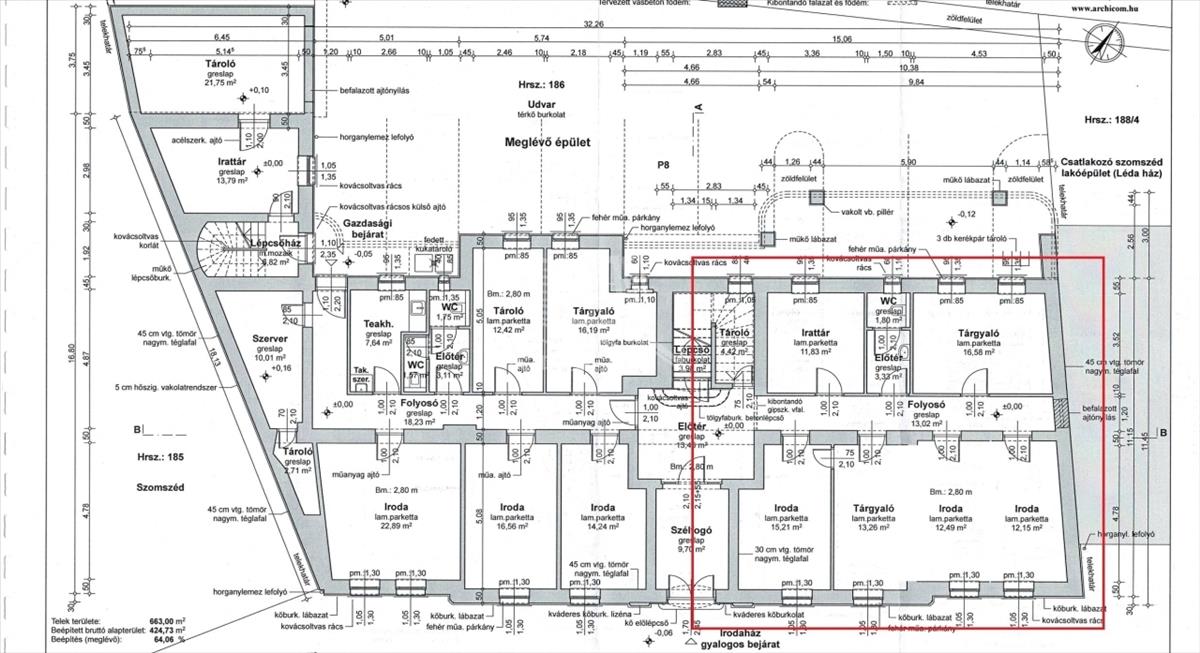 ‣ külön mosdó, wc, biztosított az irodákhoz