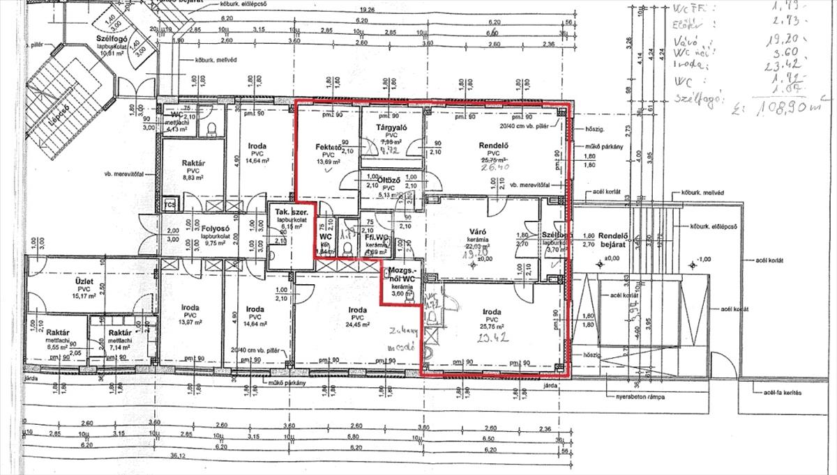 Bip-000398. Palotaváros szélén, a városközponthoz közel 109m2 összalapterületű iroda / orvosi rendelő kiadó!Elosztását illetően egy tágas előtérből / váróból, három önálló helyiségből (irodából / rendelőből) és négy vizesblokkból áll. Minden helyiséghez saját wc/kézmosó tartozik.