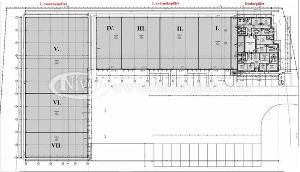 Terület: 8200 m2-es bekerített, összközműves, parkosított, térkövezett, felszíni parkolókkal ellátott.