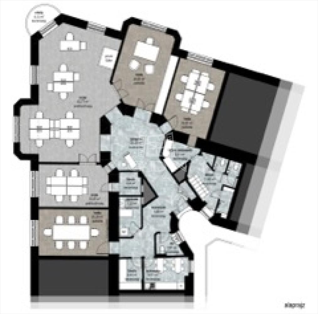 5db, változó méretű iroda- és/vagy tárgyaló helyiség; irattár; szerverszoba; kiépítés recepciónak; vendég mosdó; beépített konyha Miele gépekkel; nyomtató szoba; ; raktár; (kérésre videokonferencia fülke); szociális helyiség ( öltöző, zuhanyzó, külön női- és férfi wc)