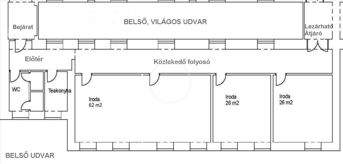 A 3 szoba mérete különböző, egybe - ezek le is zárhatóak, - és különnyílóak is, belső udvarra néznek.