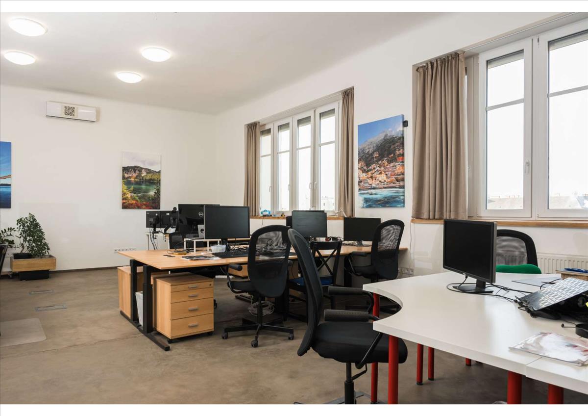 Az ingatlant 2024-ben kifejezetten irodai célra alakították ki, így nem érezzük a lakásirodák