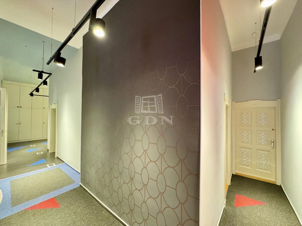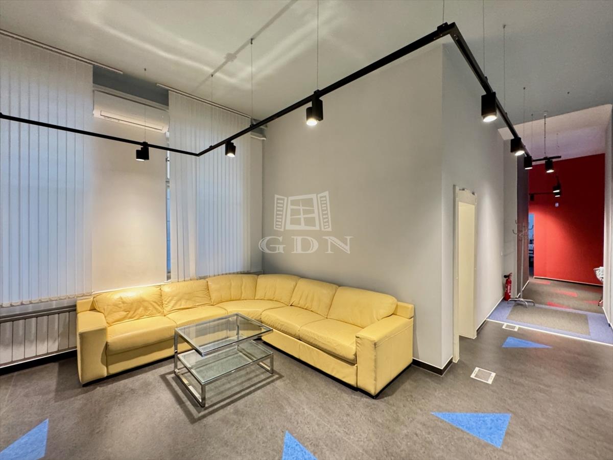 Az emeleti szint jelenleg megosztott kettő irodával, melyből a 100m2-es rész képezi a bérlemény tárgyát.
