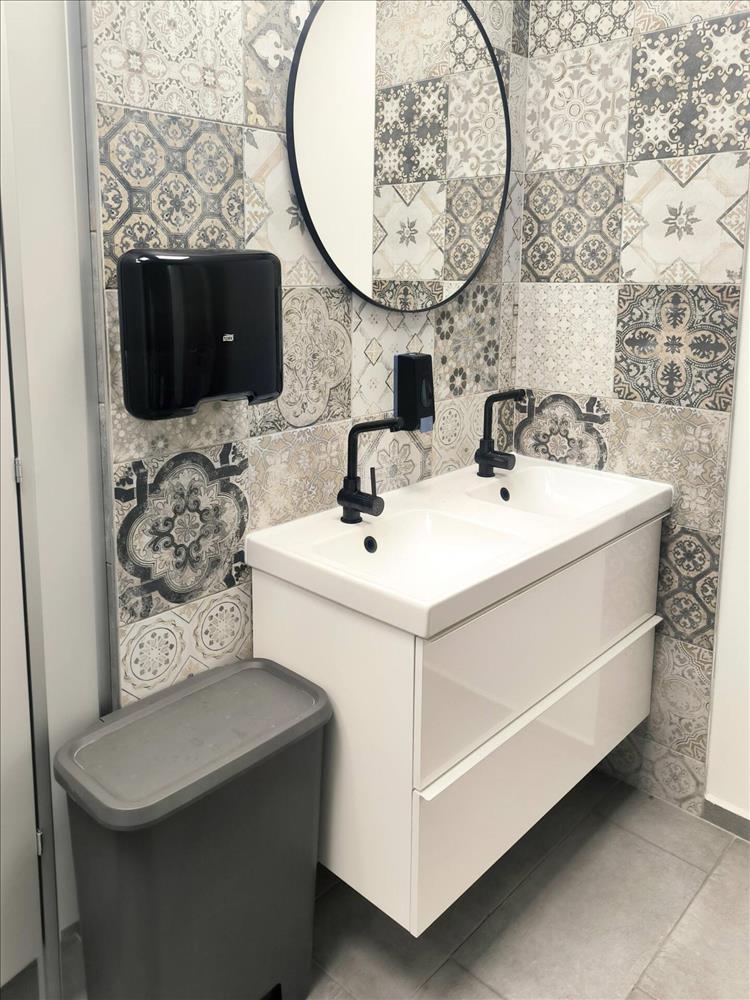 Az épület együttesben iroda- és tárgyalóhelyiségek, open office, továbbá 2 db gépesített teakonyha étkezővel, valamint női és férfi illemhelyiségek kerültek kialakításra.