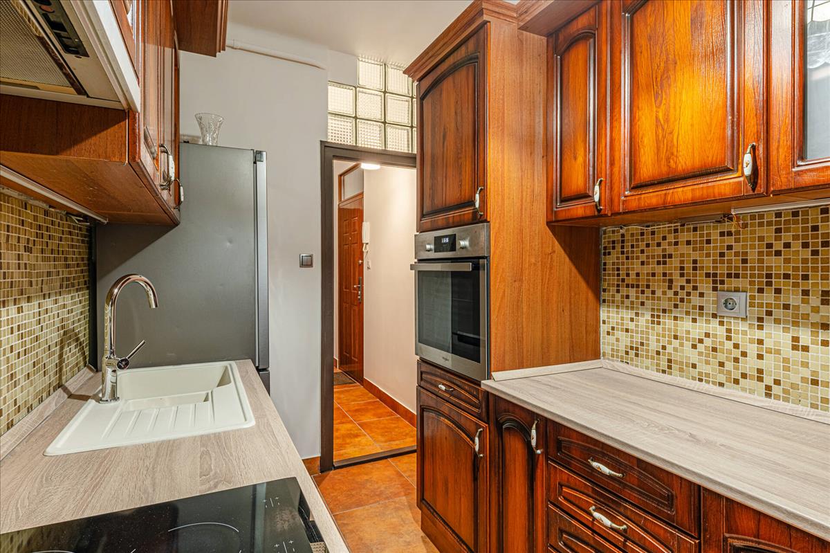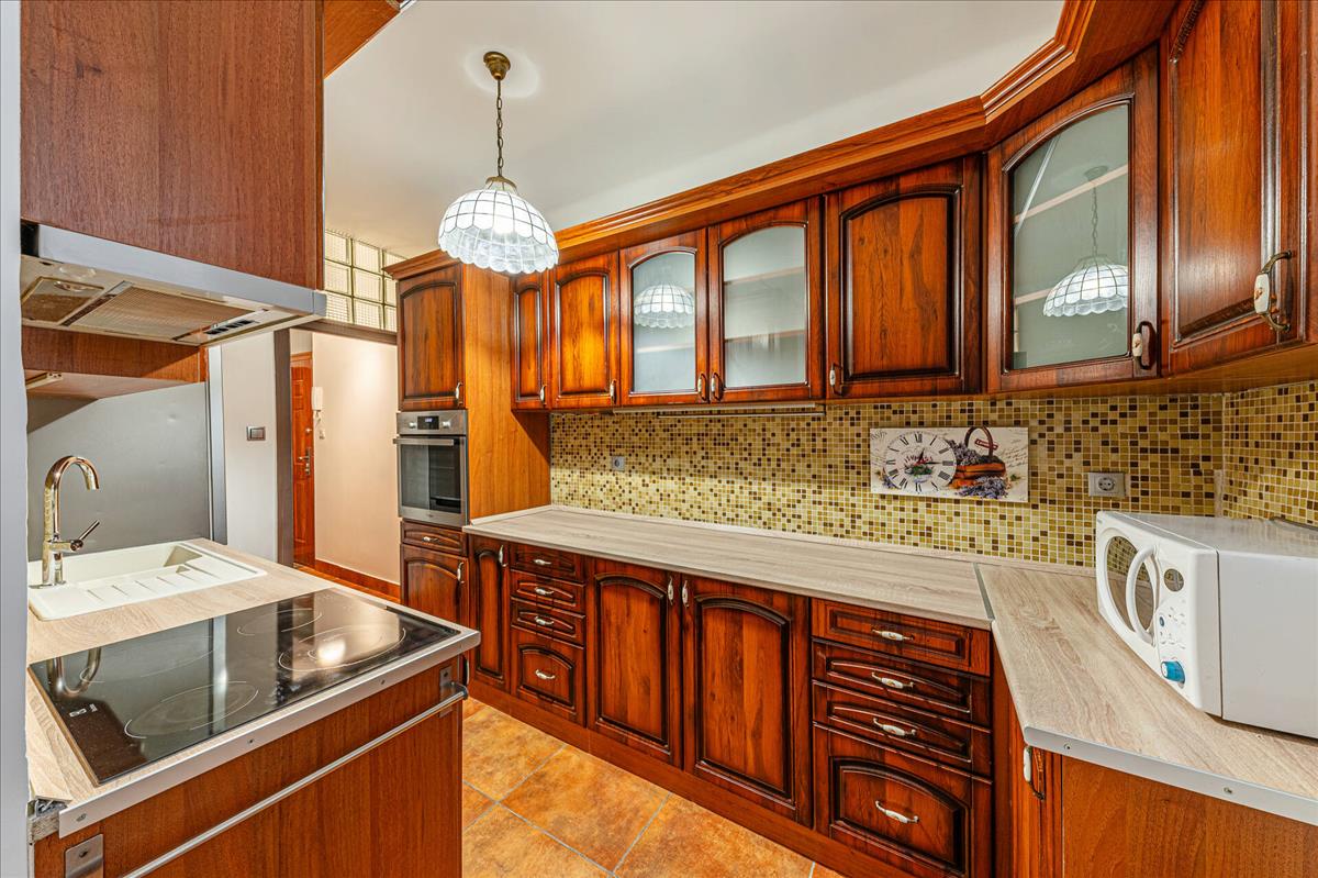 Minőségi kivitelezés: a konyha egyedi, valódi fa bútorral felszerelt, melyben teljes körű, modern gépesítés (hűtő, sütő, mosogatógép) segíti a mindennapokat.