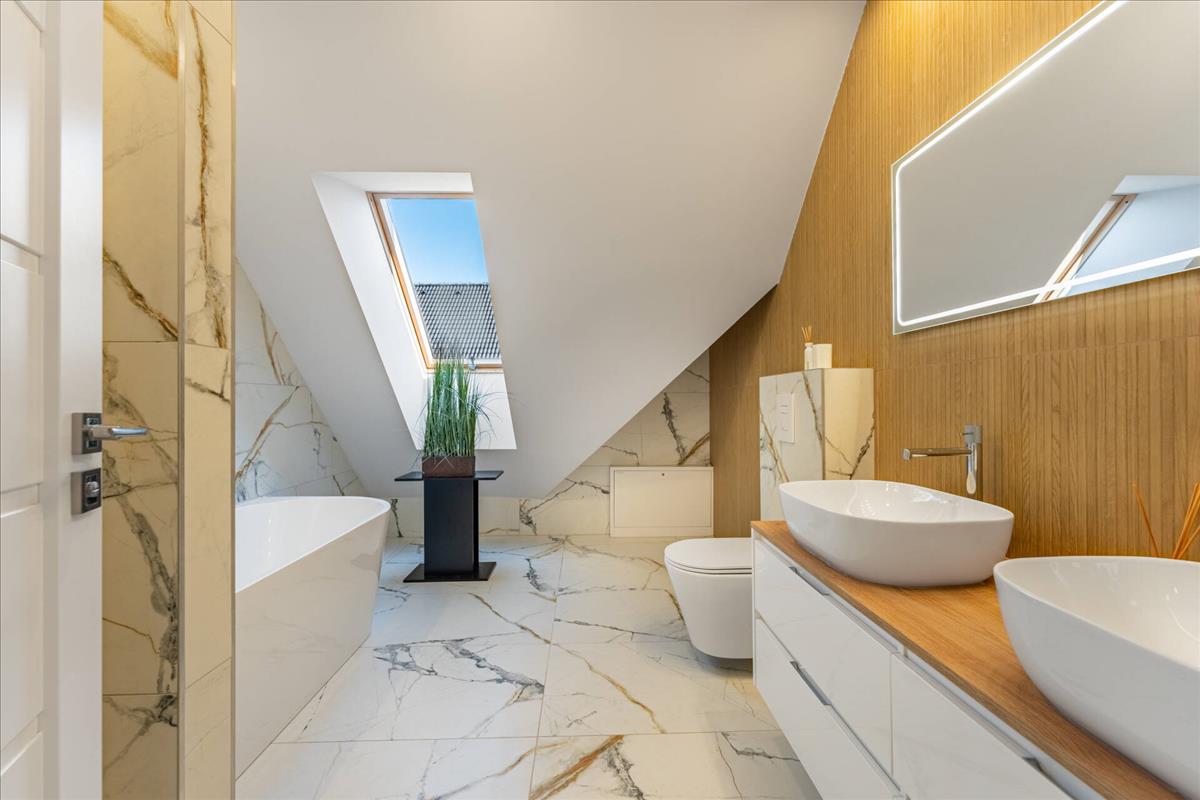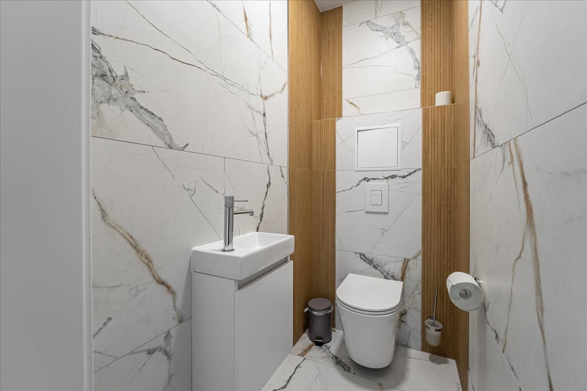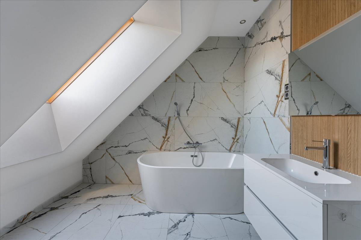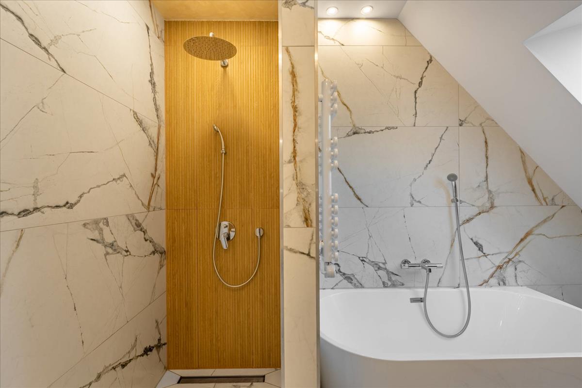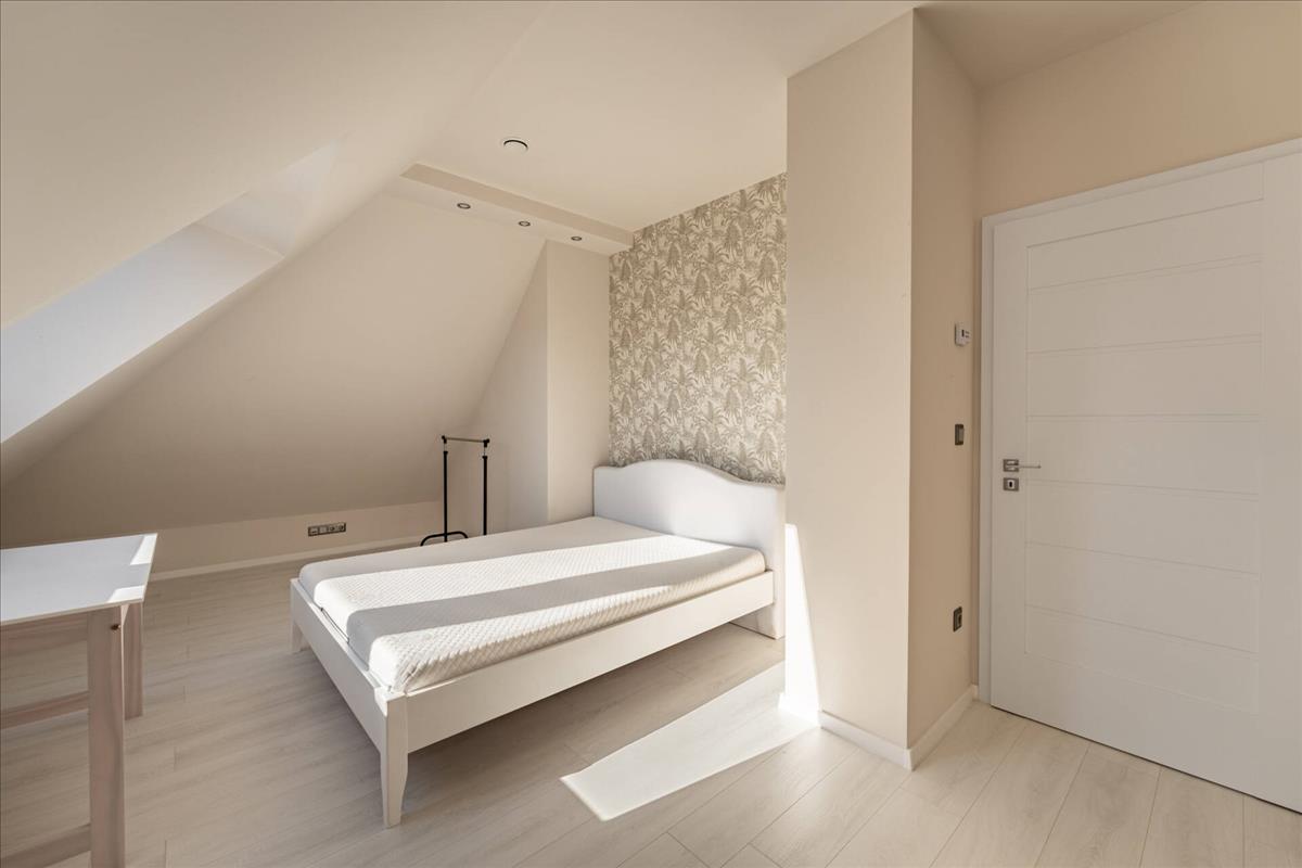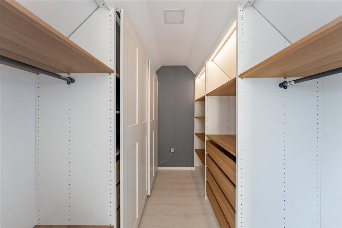 A közlekedőn helyezkedik el a második fürdőszobánk, mely zuhanyzós és kádas, mellett közvetlen található a master bedroom, melyből egy sétáló gardrób nyílik.