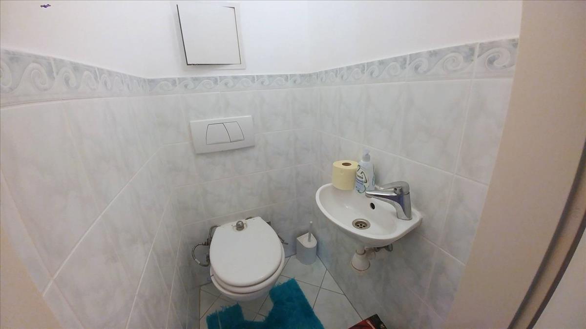 A lakás 3 WC-vel ellátott. 1 Kád, 2 zuhanyzó van. Vízóra van.