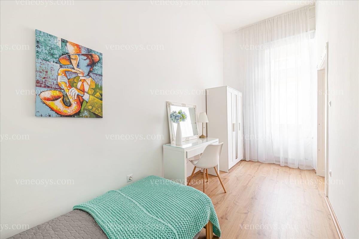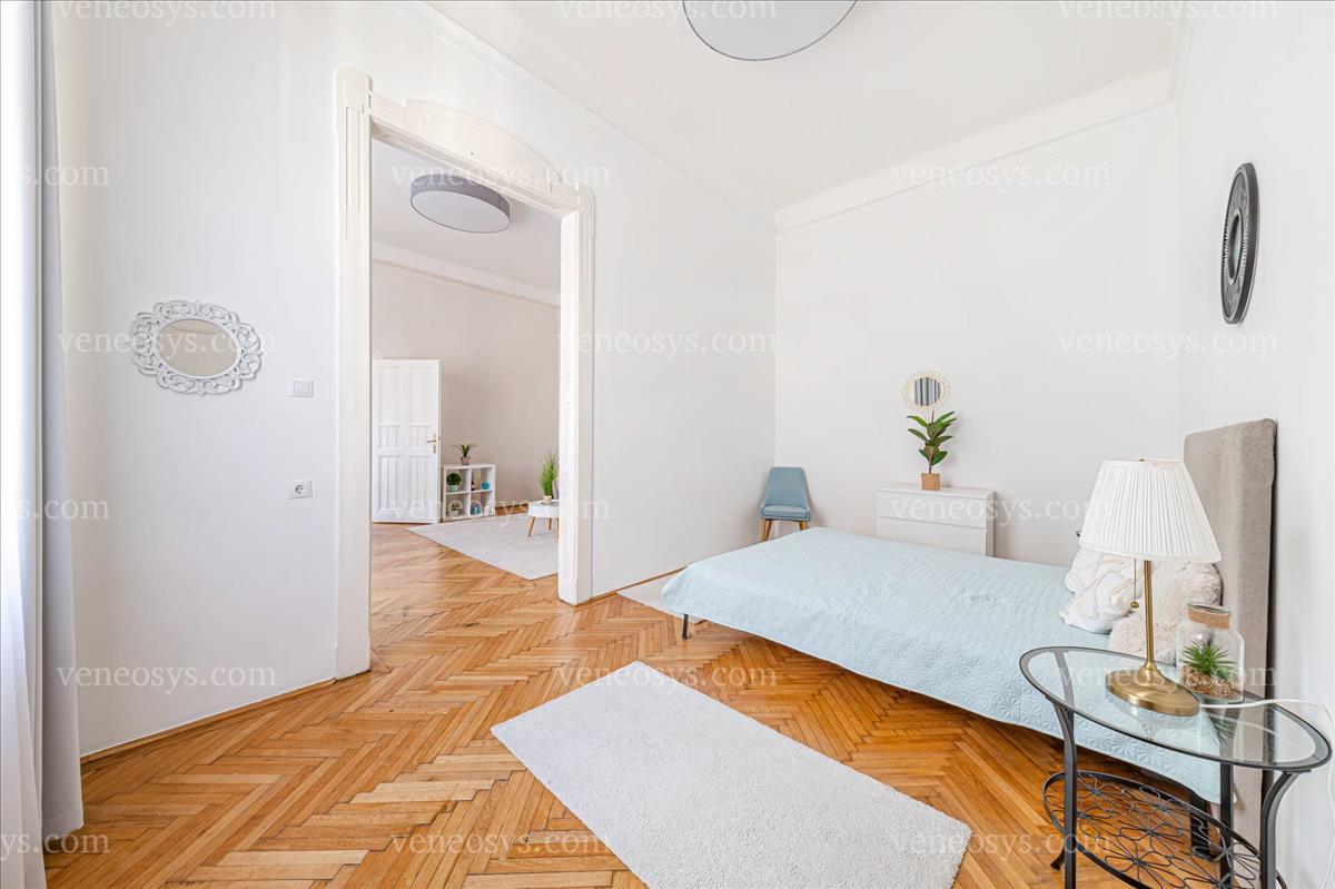 Ideális azoknak, akik otthonról dolgoznak, de szeretnének a belvárosban élni, mivel extra csendes, tágas lakás, az egyik szobája akár dolgozó szobának is használható.
