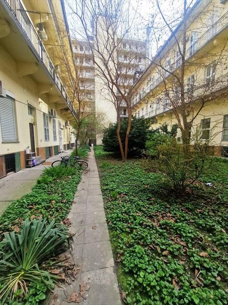 A lakás egy hangulatos, klasszikus bérház 2. emeletén található, és egy zöld, fás belső udvarra néz, így valódi csendes menedék a belváros forgatagában.