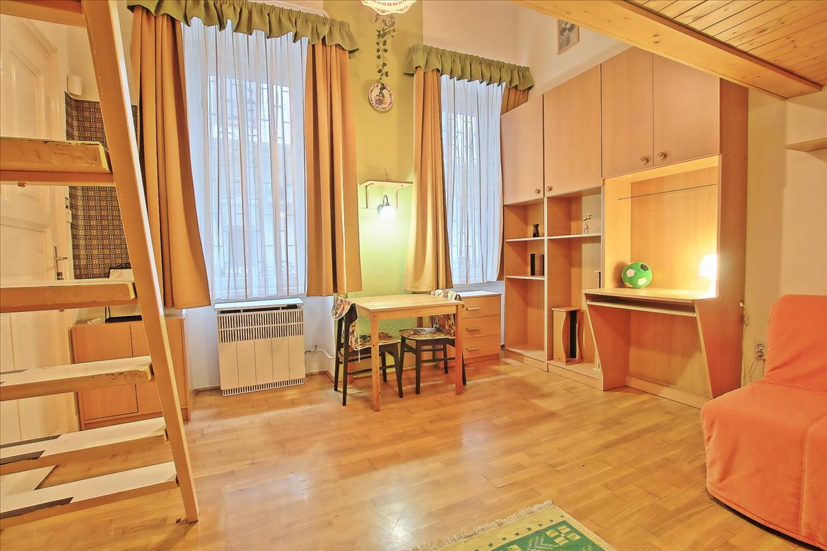 VII. Alsó erdősor utcában, egy felújított polgári stílusban épült társasház 1. emeletén, kiadó 25 m2-es, felújított lakás.