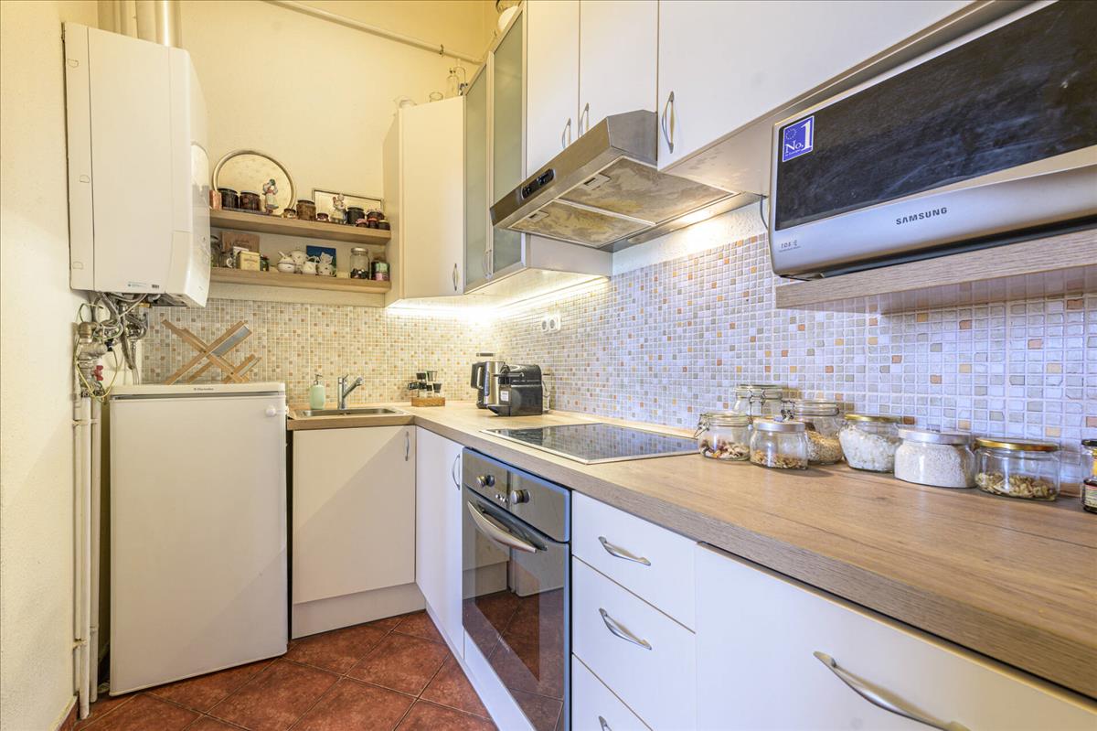 Bár a lakás bútor nélkül kiadó, a gépesített konyha, mosógép és egy hatalmas gardrób szekrény bent maradnak.