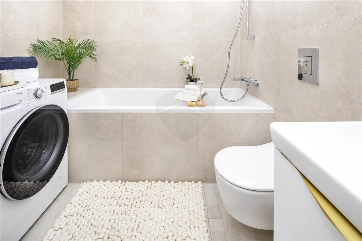 Az ingatlan igényesen berendezett és teljes körűen gépesített, így azonnal költözhető. a tágas nappali és a három külön nyíló hálószoba jól szervezhető, kényelmes életteret biztosít akár családok, akár több bérlő számára. a lakás két fürdőszobával rendelkezik, ami a mindennapokban extra komfortot nyújt.