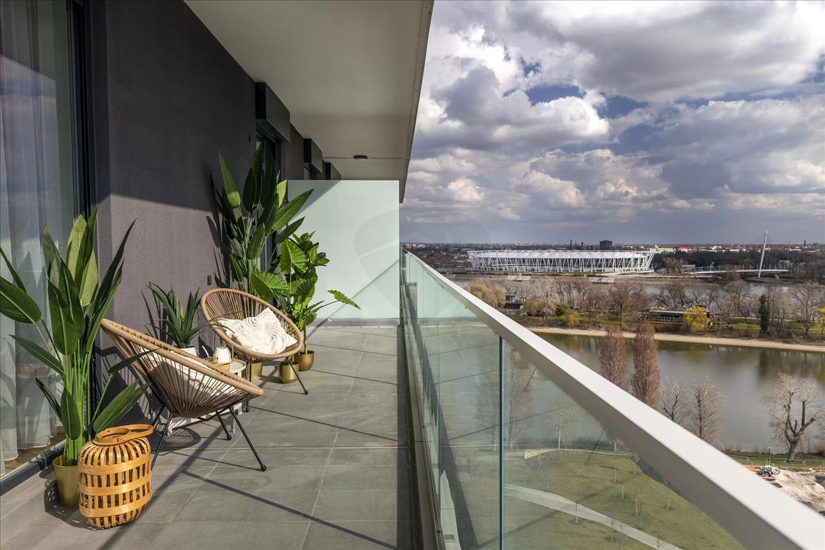 A mennyezeti hűtés-fűtés minden helyiségben egyenletes hőérzetet biztosít. a lakás egyik különlegessége a 46 m²-es, DNY-i tájolású, rendkívül tágas erkély, amely közvetlen vízparti elhelyezkedésének köszönhetően egyedi hangulatot kínál.