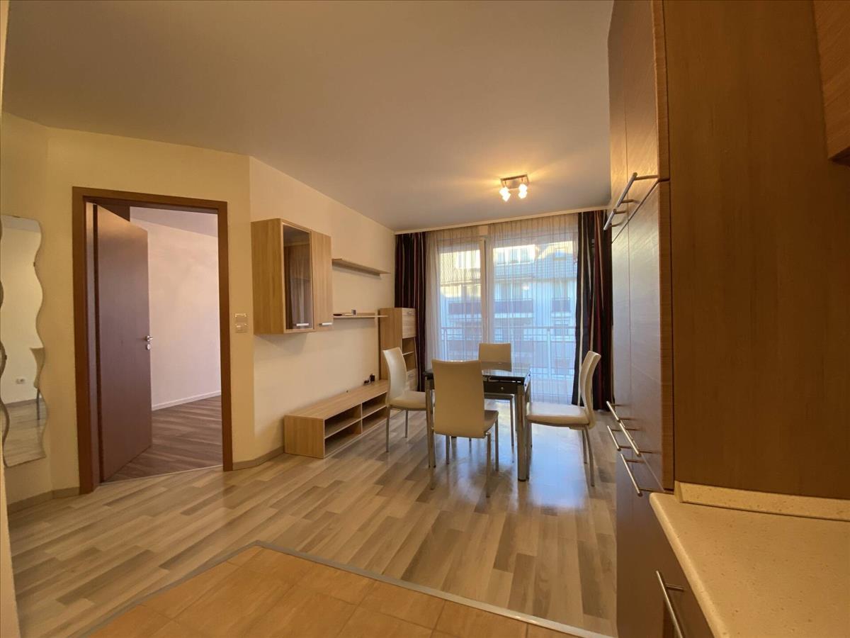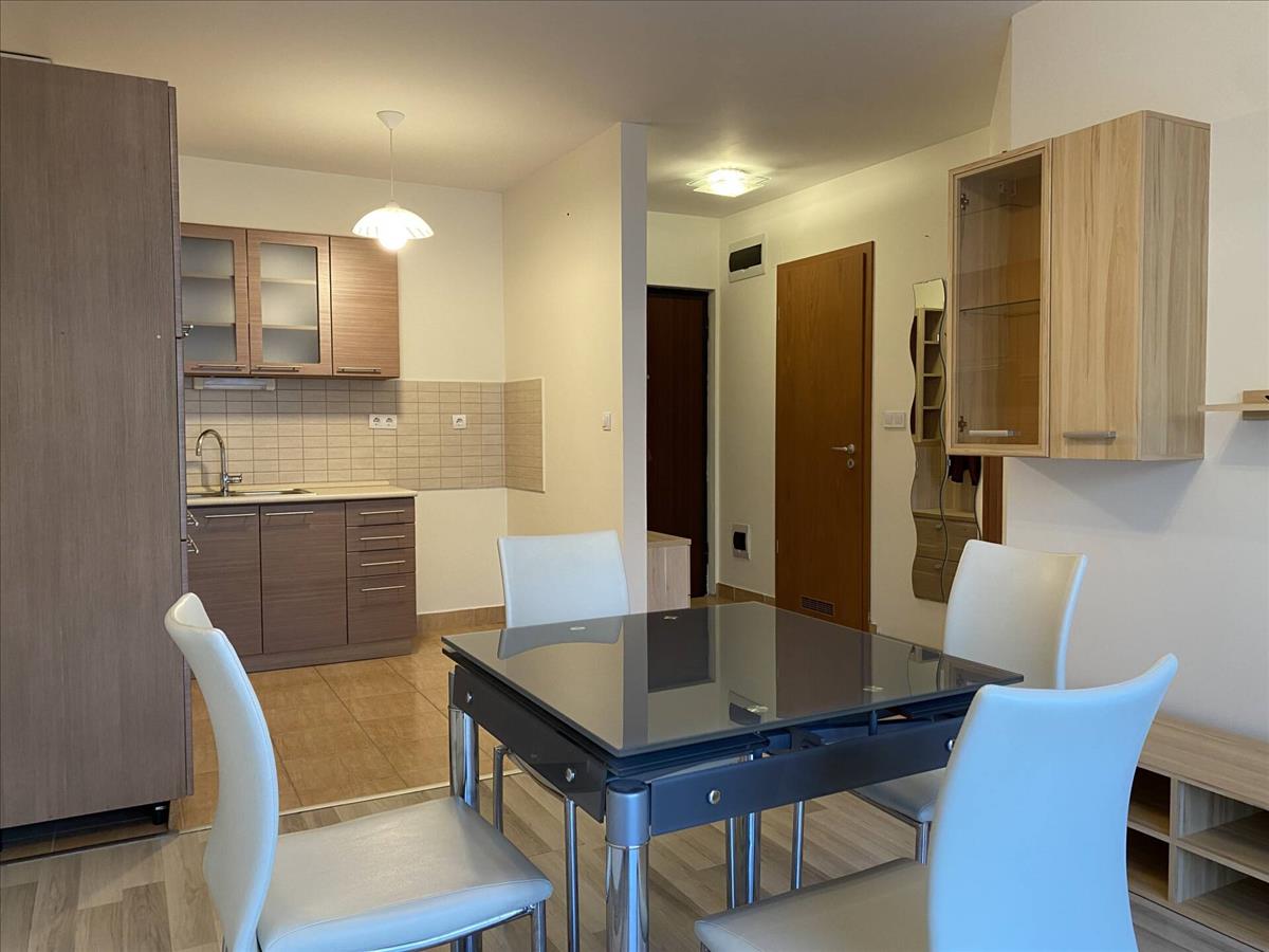 A lakás teljesen felszerelt konyhával, beépített bútorokkal kiadó. a konyhában cata tűzhely sütővel és kivezetett elszívó van beépítve. Részben gépesített, mosógép és mosogatógép nincs, de a kiállás biztosított. a szobában tv-szekrény és étkezőasztal, székekkel a lakásban maradnak.